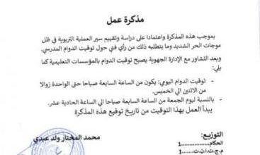 الأصالة: تقرر بموجب مذكرة عمل وقعها والي كوركول محمد المختار ولد عبدي اليوم الثلاثاء تغيير…