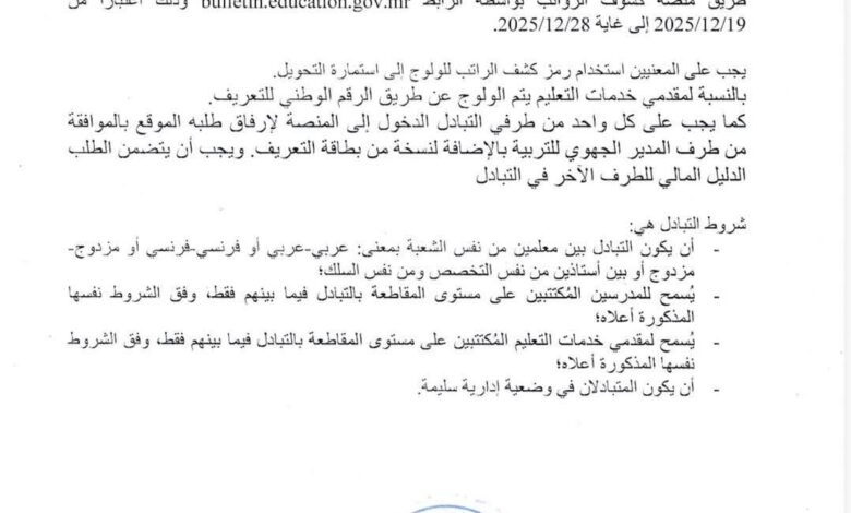 الأصالة: قالت وزارة التجهيز والنقل إن المصالح المختصة للشرطة الوطنية ستباشر ابتداءً من يوم الخميس الموافق 25 دجمبر 2025، العمل بالنظام الرقمي الجديد الخاص برصد وتسجيل المخالفات المرورية.