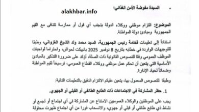الأصالة: أمر الوزير الأول المختار ولد اجاي أعضاء الحكومة ومن في رتبتهم برصد المخالفات المتعلقة بالأقوال أو الممارسات التي تتنافى…